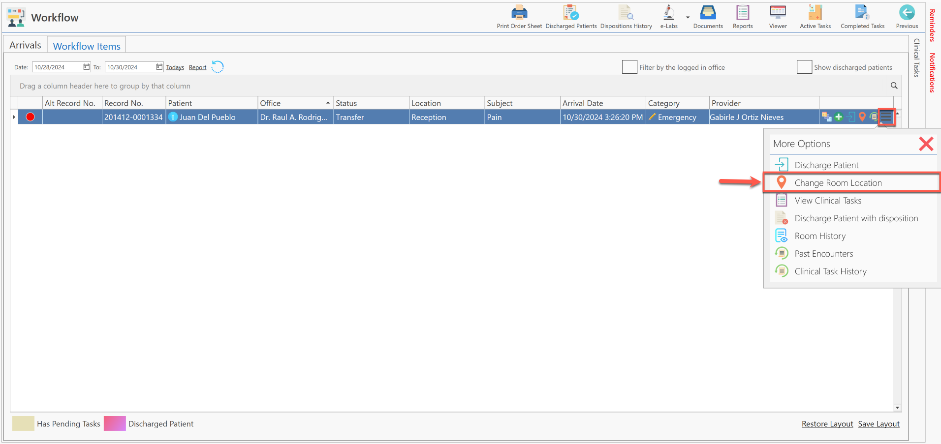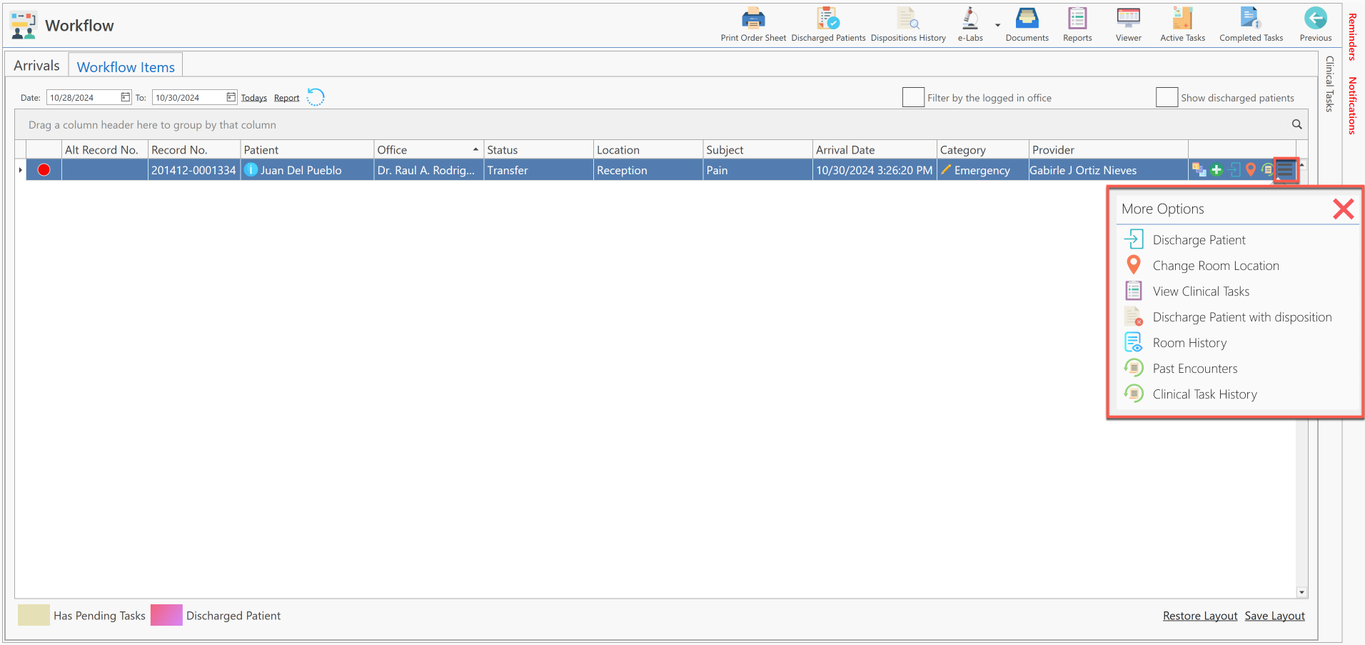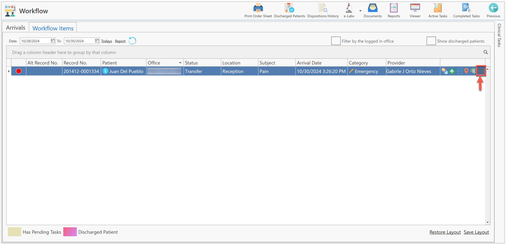 - Presione el botón de "More Options", localizado en la parte extrema derecha del paciente seleccionado.