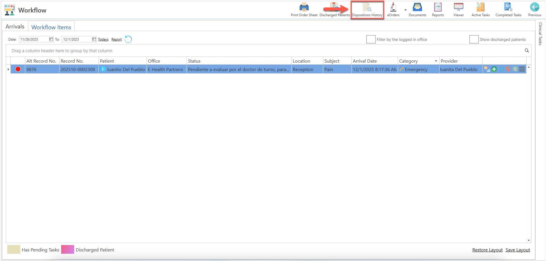 - Luego, presione el botón de "Disposition History", localizado en la parte superior de la pantalla.