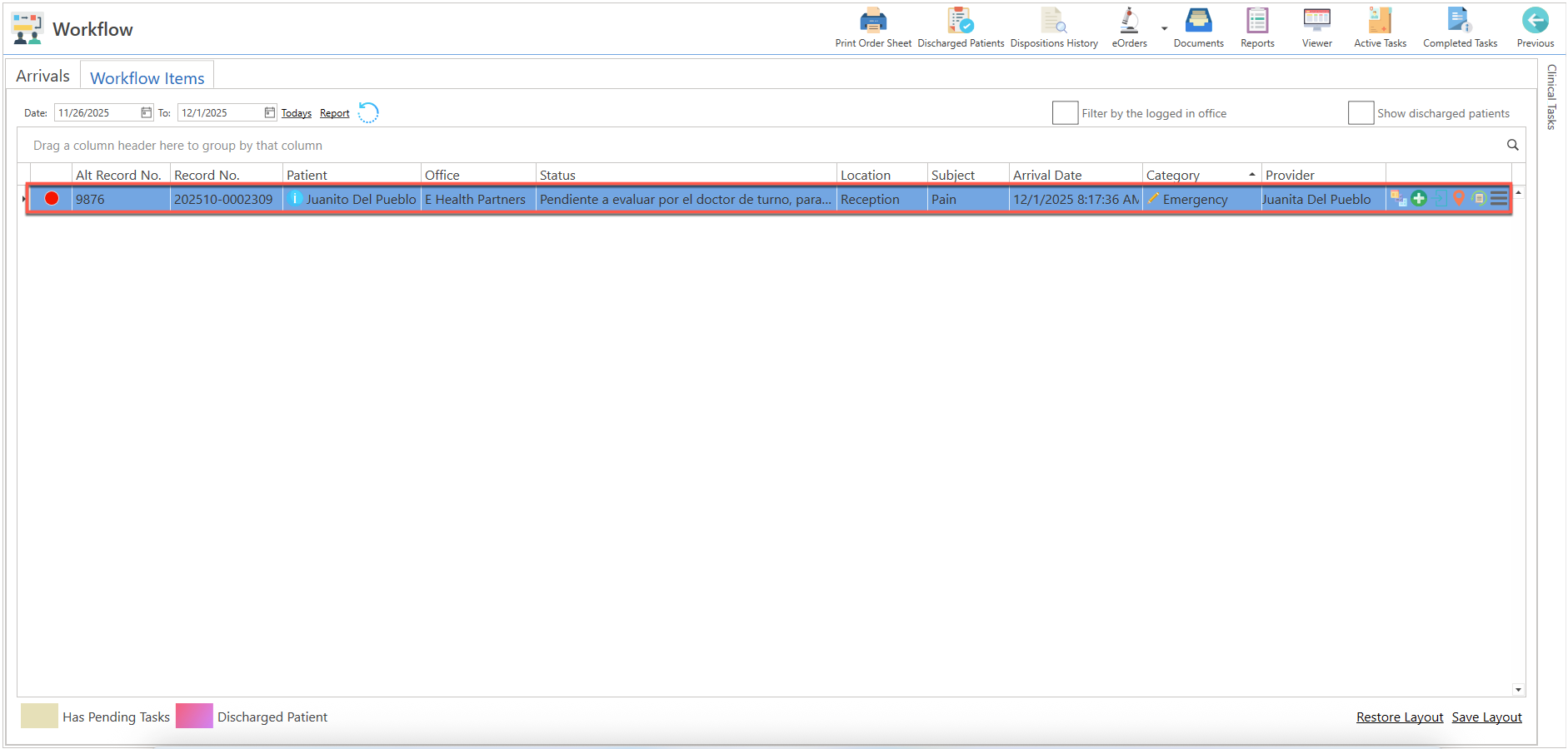 - Automáticamente, el paciente será removido de la lista de "Workflow Items".