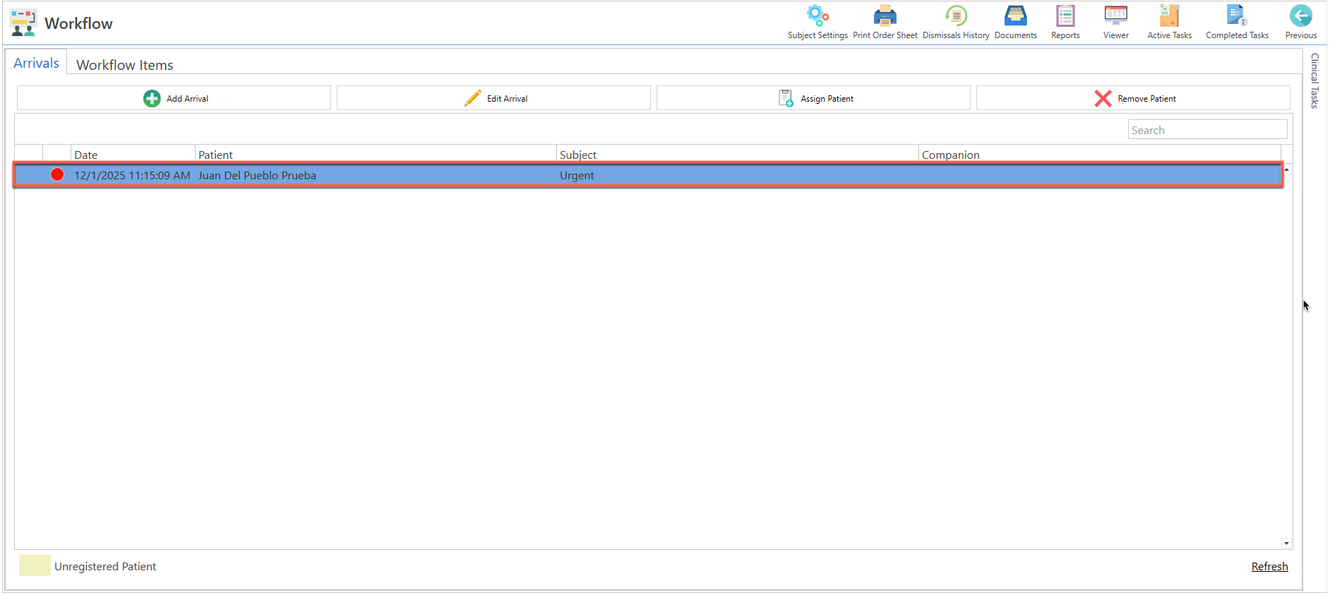 - Presione el botón de "Yes", para remover el paciente de la lista de "Arrivals" y registrar que se fue de la oficina o centro, sin ser atendido.