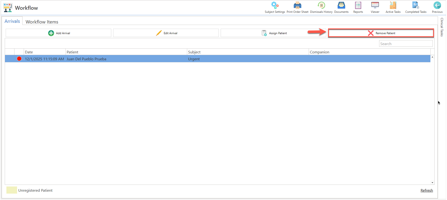 - Una vez seleccionado, presione el botón de "Remove Patients".