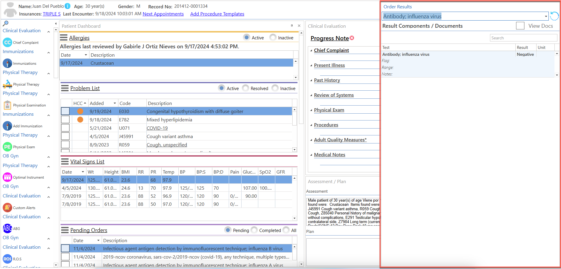 - Order Results: Despliega la lista, de los resultados de órdenes del paciente.