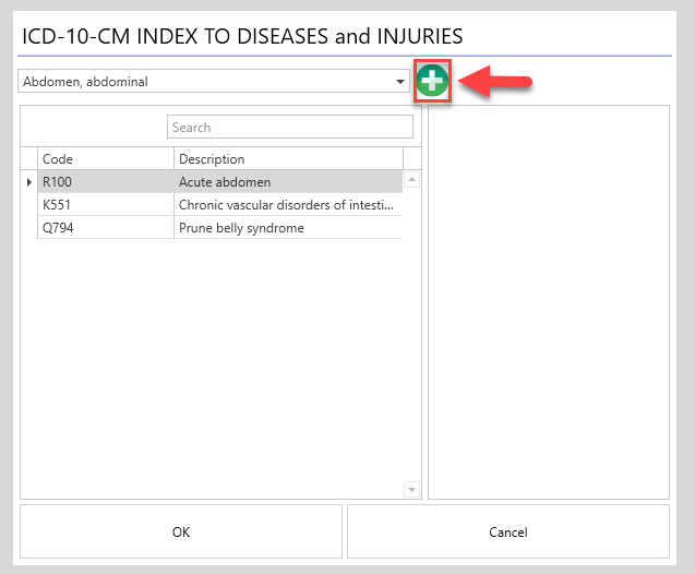 - Seleccione el diagnóstico específico, que desea agregar y luego, presione el botón de "Save", localizado en la parte superior de la pantalla.