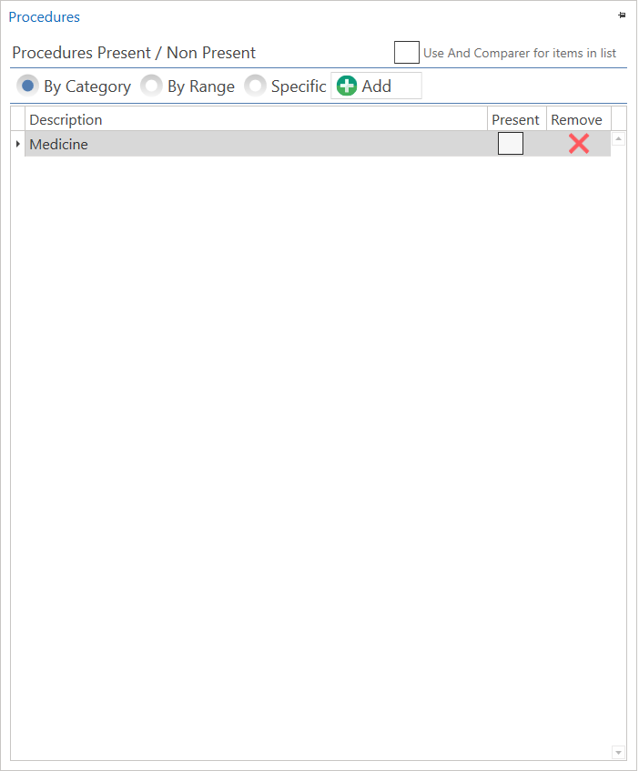 - Para agregar procedimientos por categoría, a la alerta clínica, seleccione la opción de "By Category".