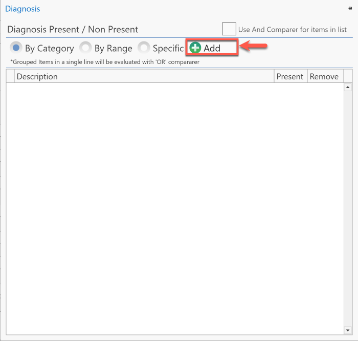 - Para agregar un diagnóstico por categoría, seleccione la opción de "By Category".