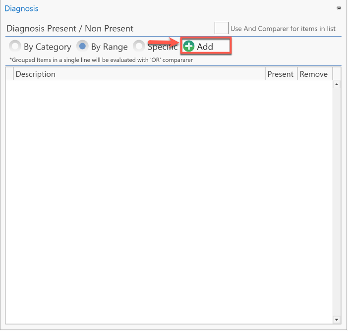 Para agregar un diagnóstico por rango, seleccione la opción de "By Range".