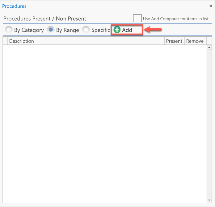 - Para agregar procedimientos por rangos, a la alerta clínica, seleccione la opción de "By Range".