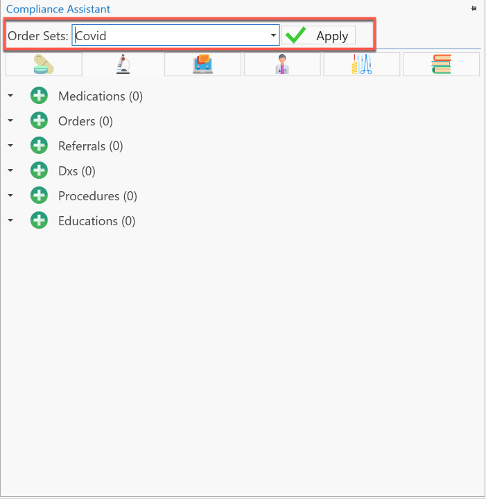- Seleccione el "Order Set", que desea agregar y luego, presione el botón de "Apply".