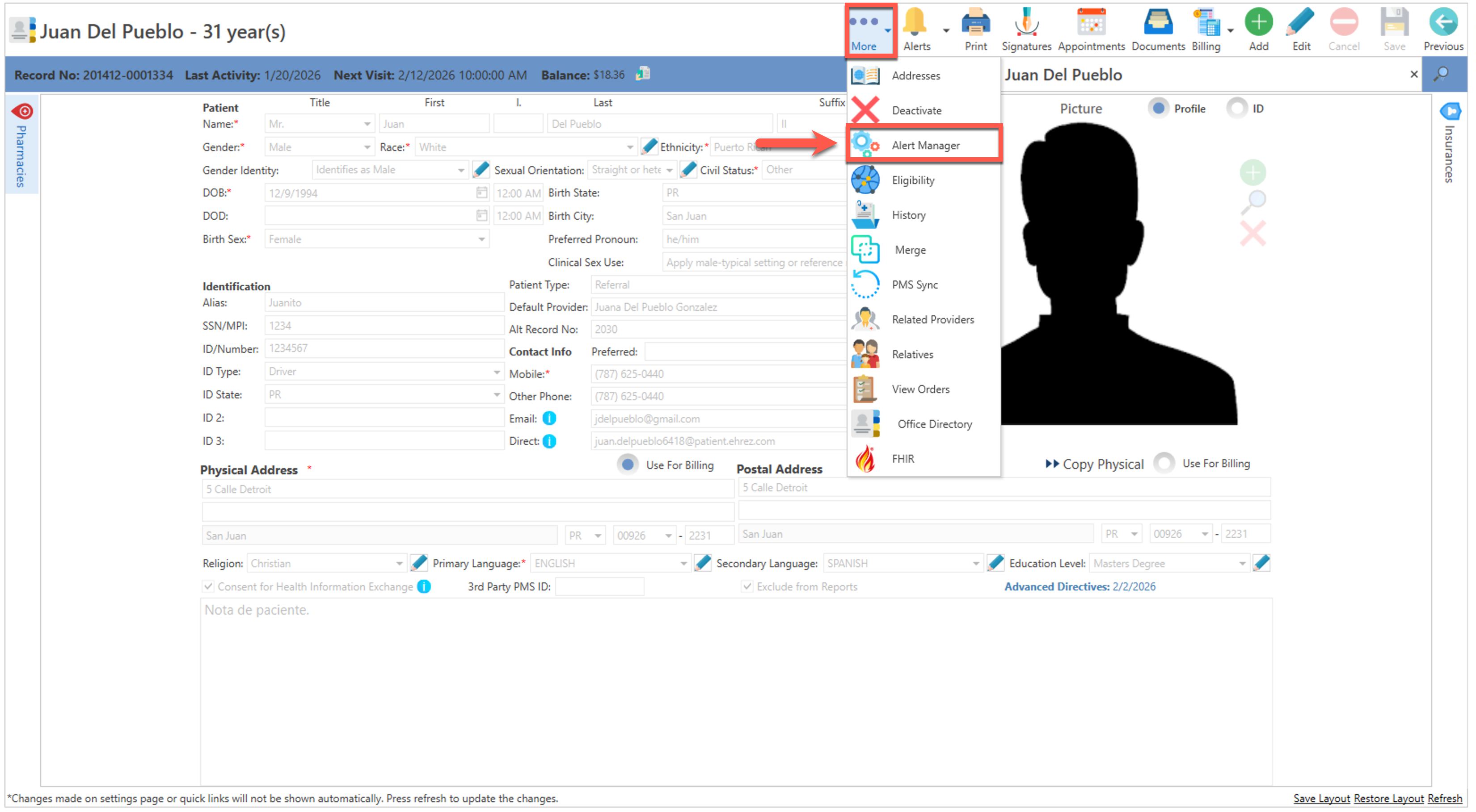 Existen varias opciones, para manejar las alertas administrativas y clínicas, de un paciente en específico o de todos los pacientes.