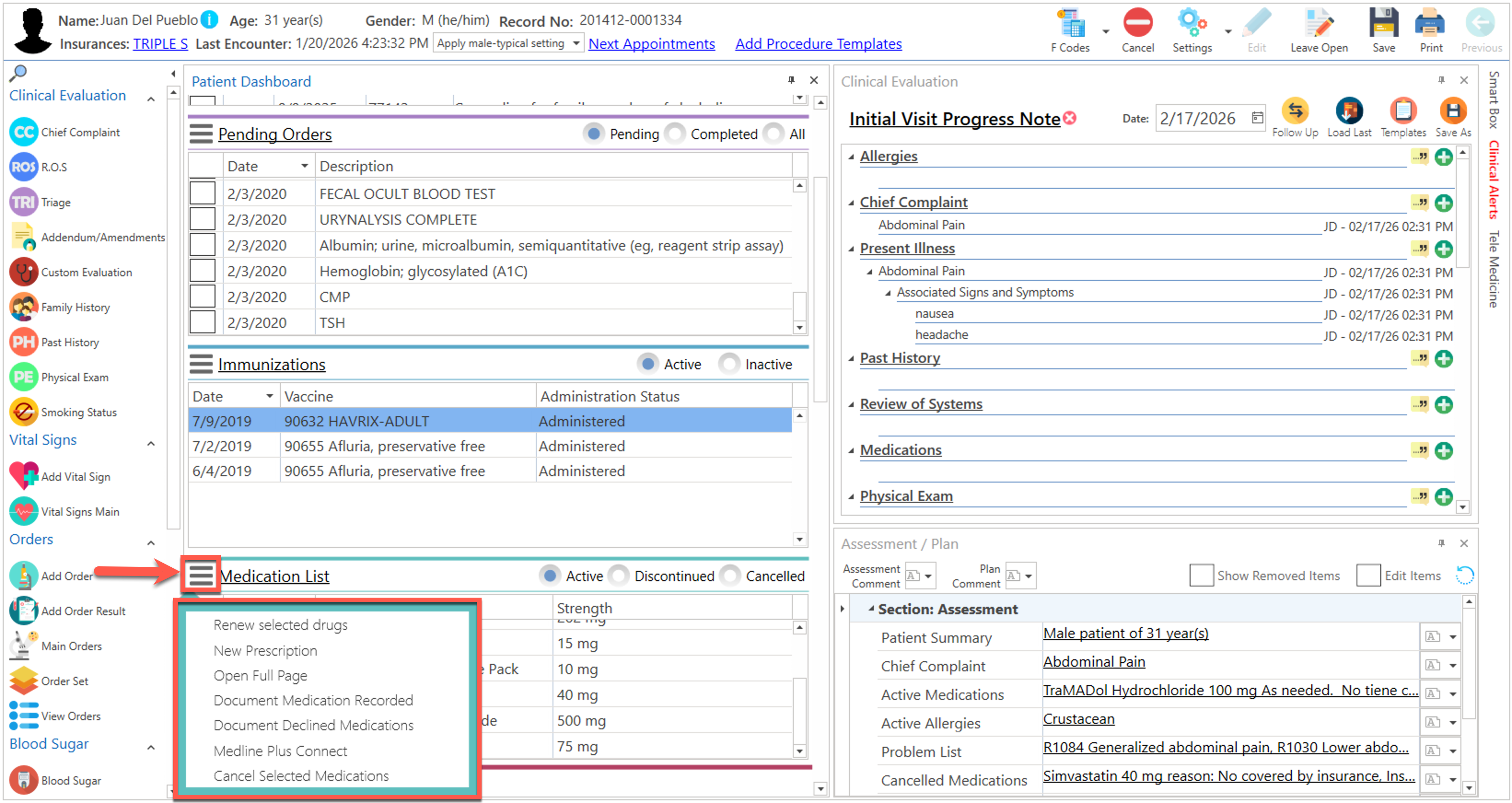 - Al presionar sobre el botón de "More", localizado al lado del enlace de "Medication List" o presionar el botón derecho del "mouse", se desplegarán las siguientes opciones:
