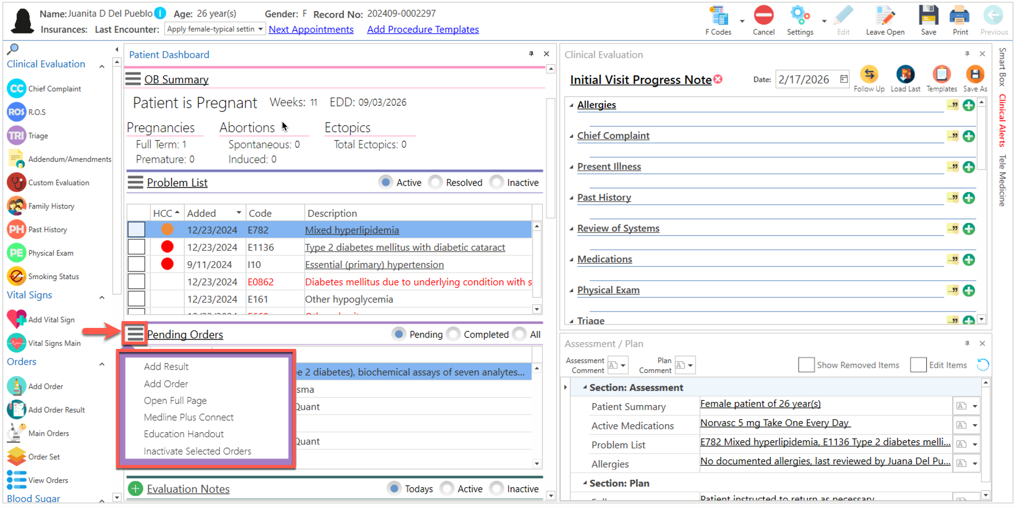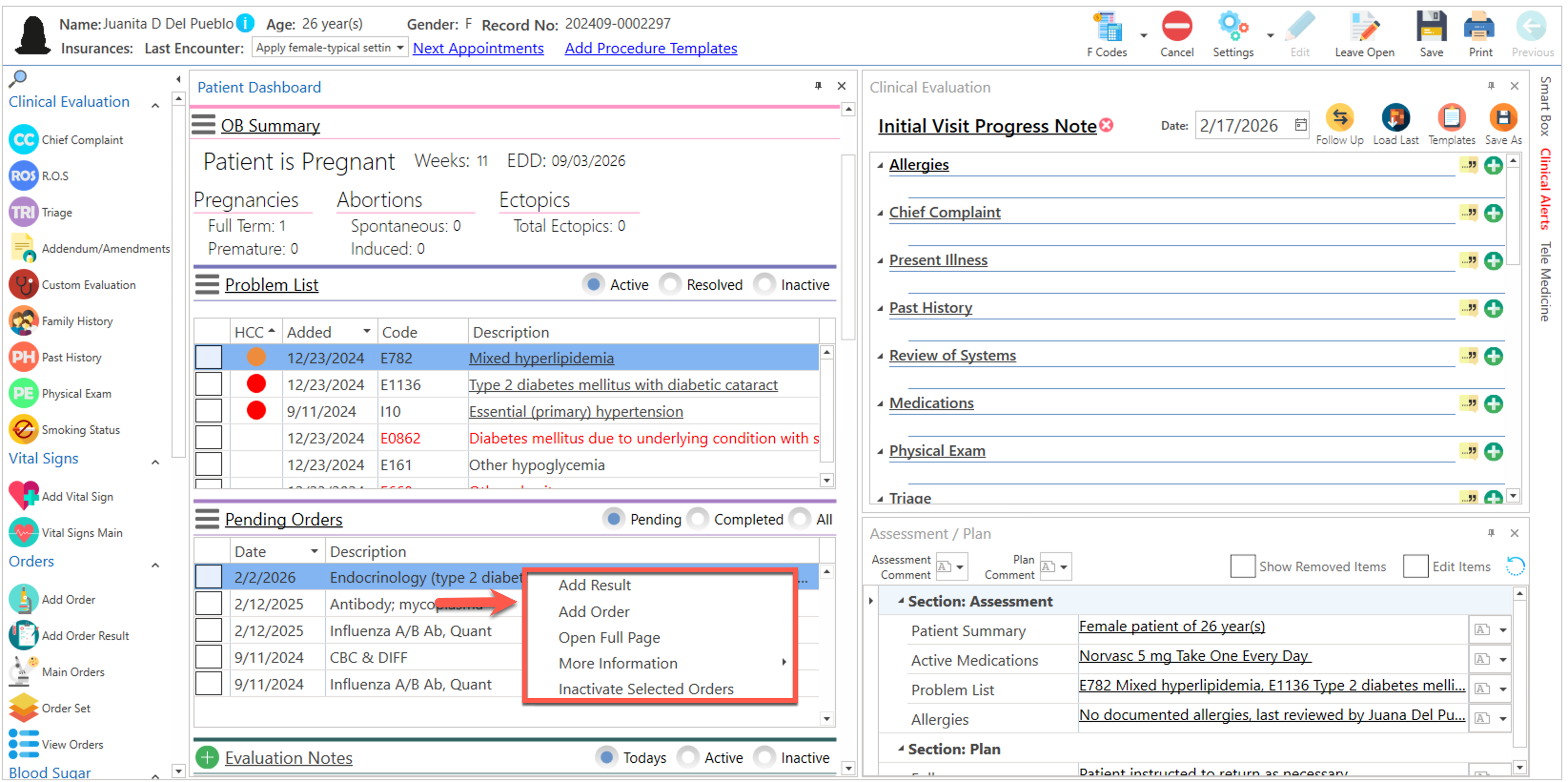 - Add Order: Permite agregar órdenes de laboratorios, estudios y procedimientos al paciente.