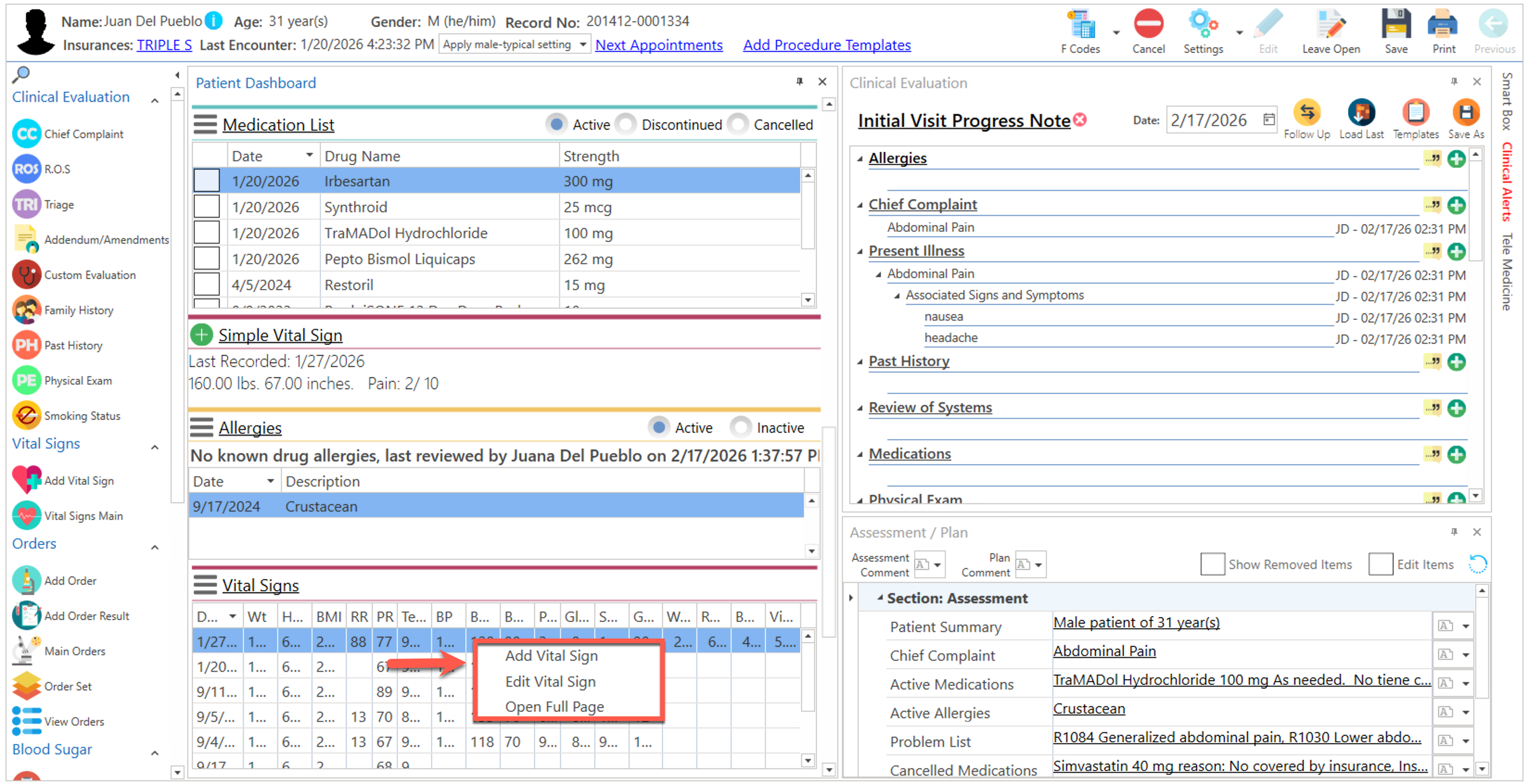 - Edit Vital Sign: Permite editar el registro seleccionado de vitales del paciente.