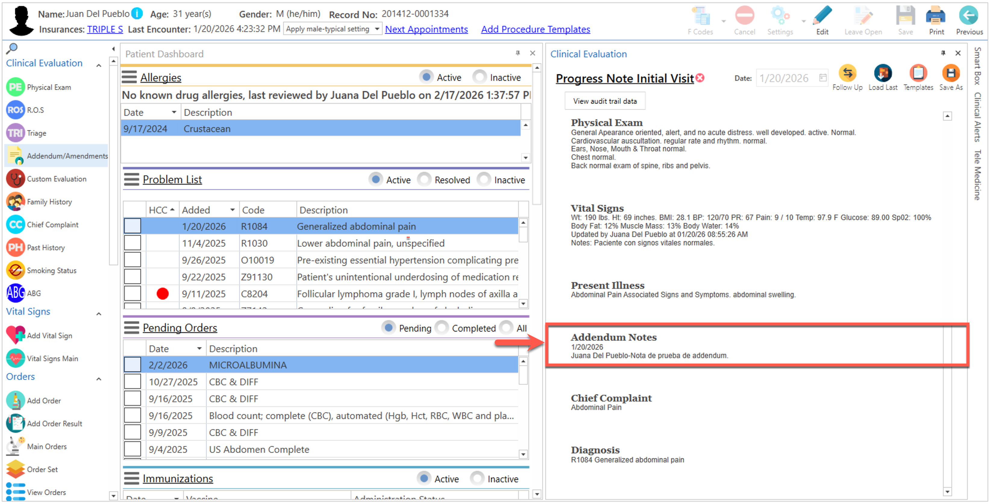 - Presione el botón de "Yes", para proceder agregar la nota de "Addendum".