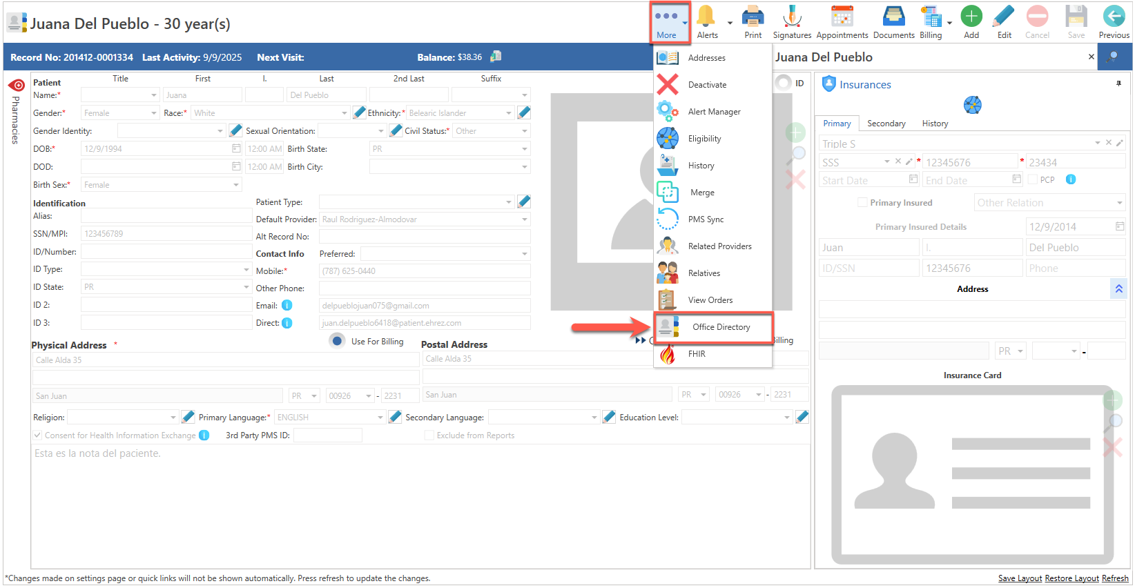 - Conociendo el área de: Patients / Office Directory