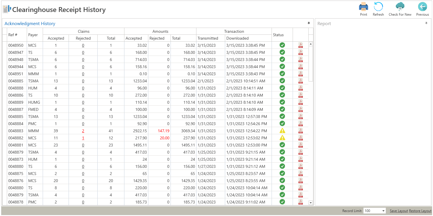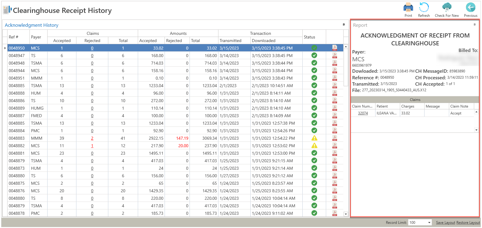 - Check for New: Al presionar, permite desplegar los pagos procesados de las aseguradoras.