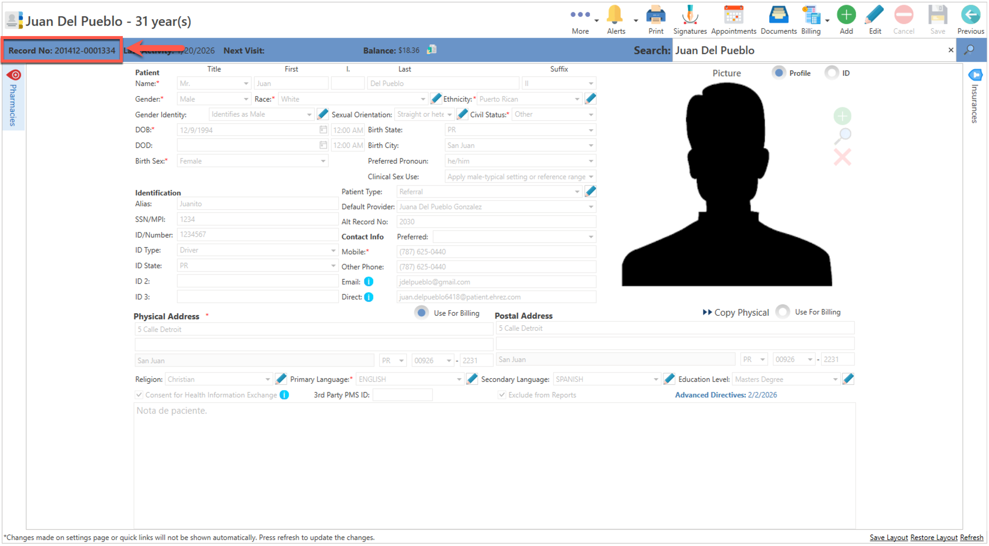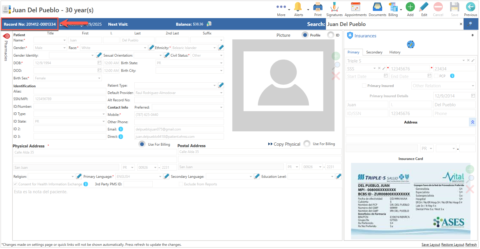 - Automáticamente, el sistema le asignará un número de récord al paciente.