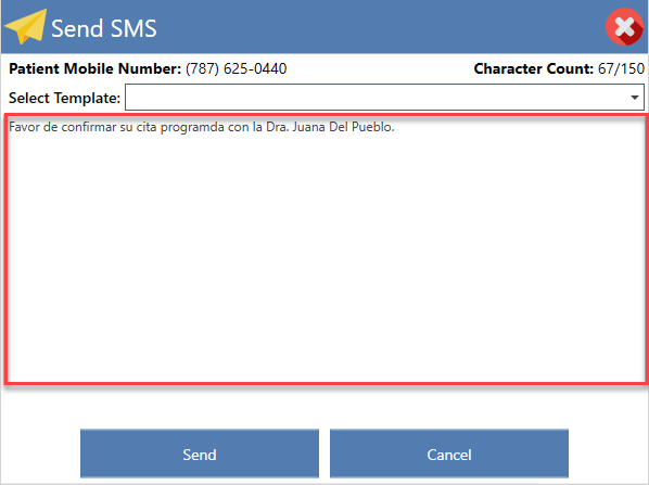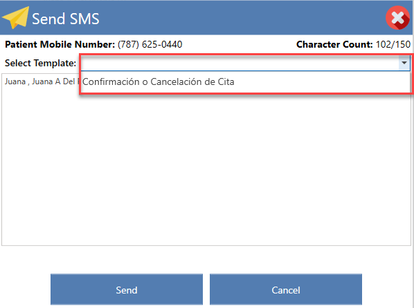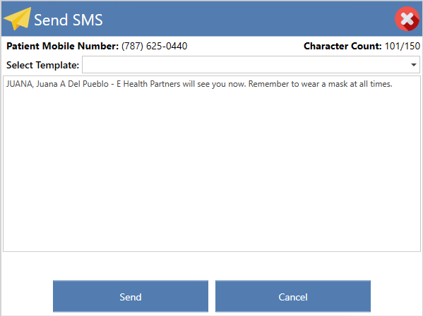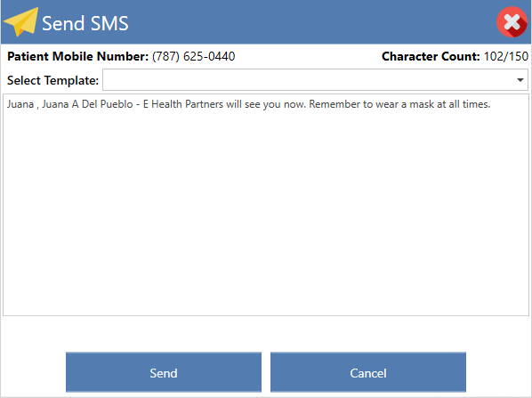 - Please choose the text message template you wish to send to the patient.