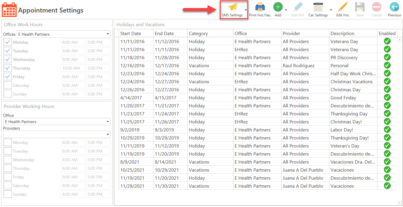 - Click the Send SMS button located next to the patient's name.