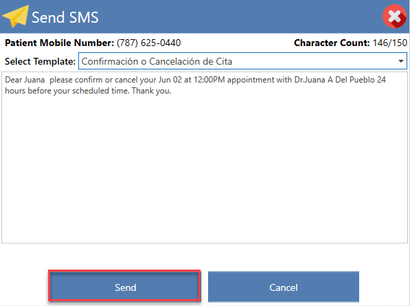 - To send the pre-configured text message, please click the Send button.