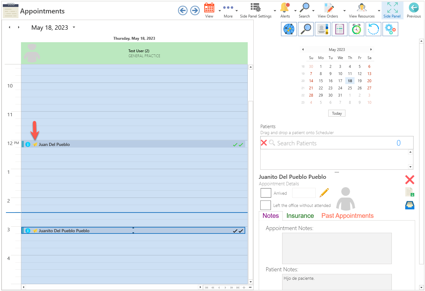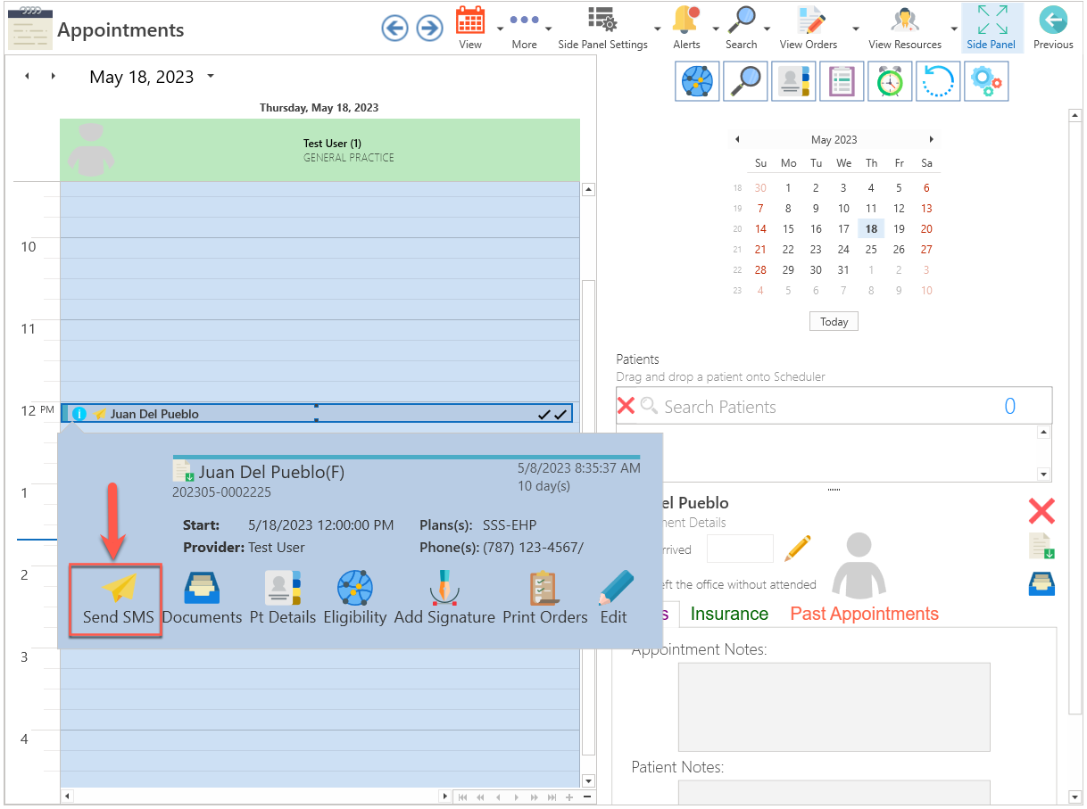 - Click on Send SMS next to the patient's name.