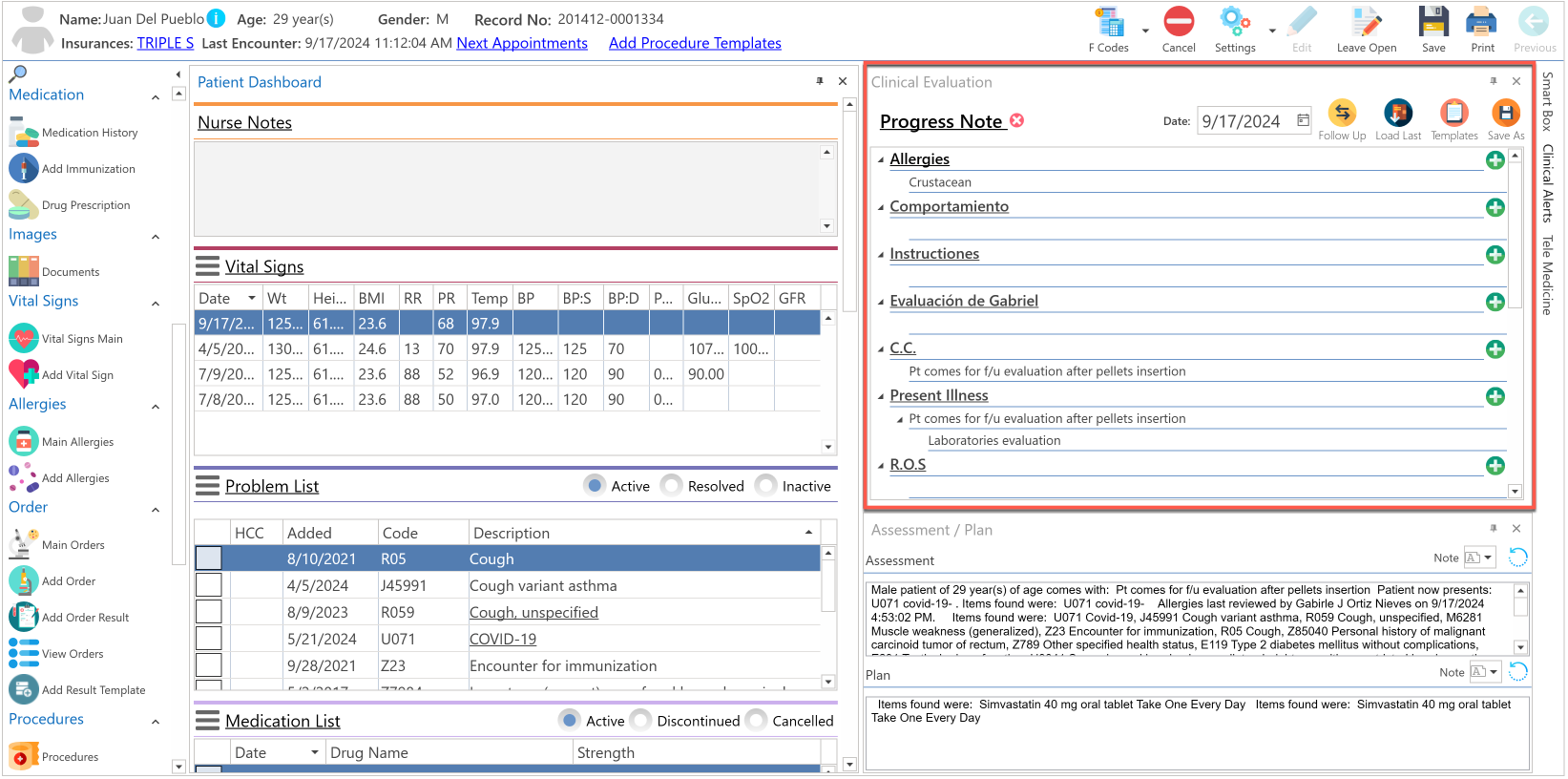 Selecting this option enables the text in the Clinical Evaluation section to be displayed in syntax. It is necessary to choose this option before initiating the clinical evaluation of the patient.