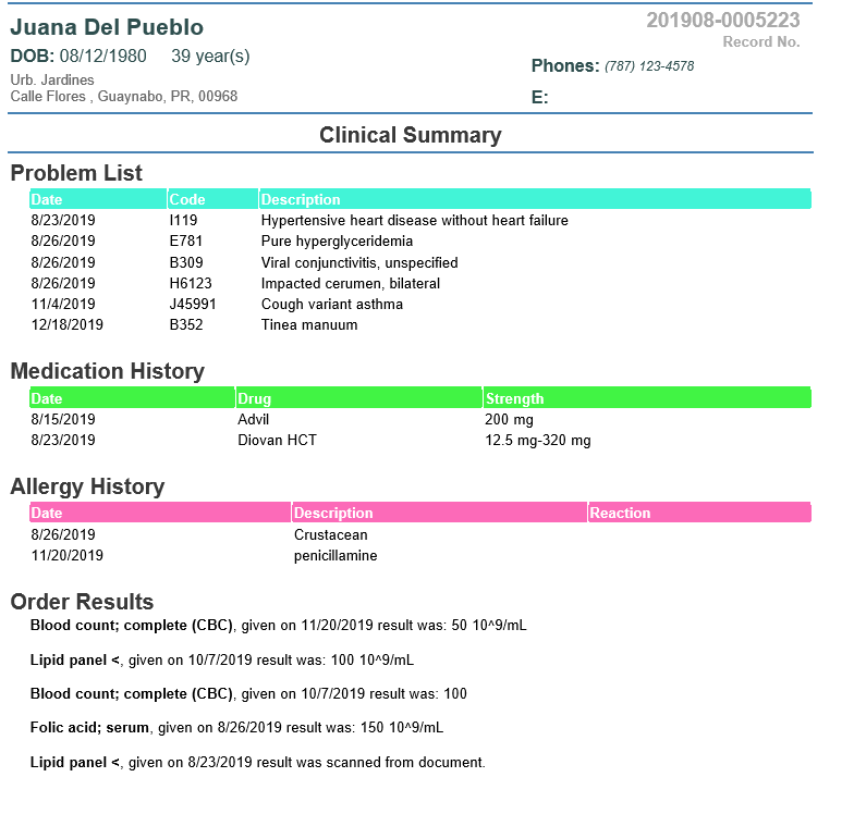 The section presents the patient's clinical summary.