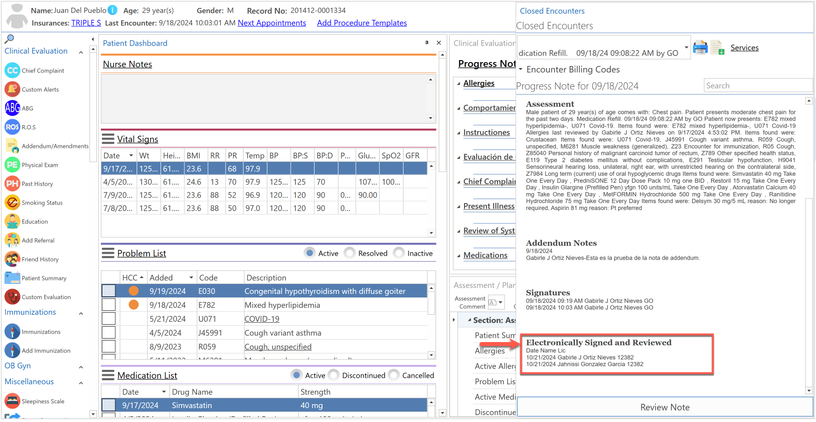 Nota: Antes de poder realizar esta función, deberá tener seleccionado en la pantalla de "Progress Note Template Settings", la opción de "Electronically Signed and Reviewed" seleccionada.