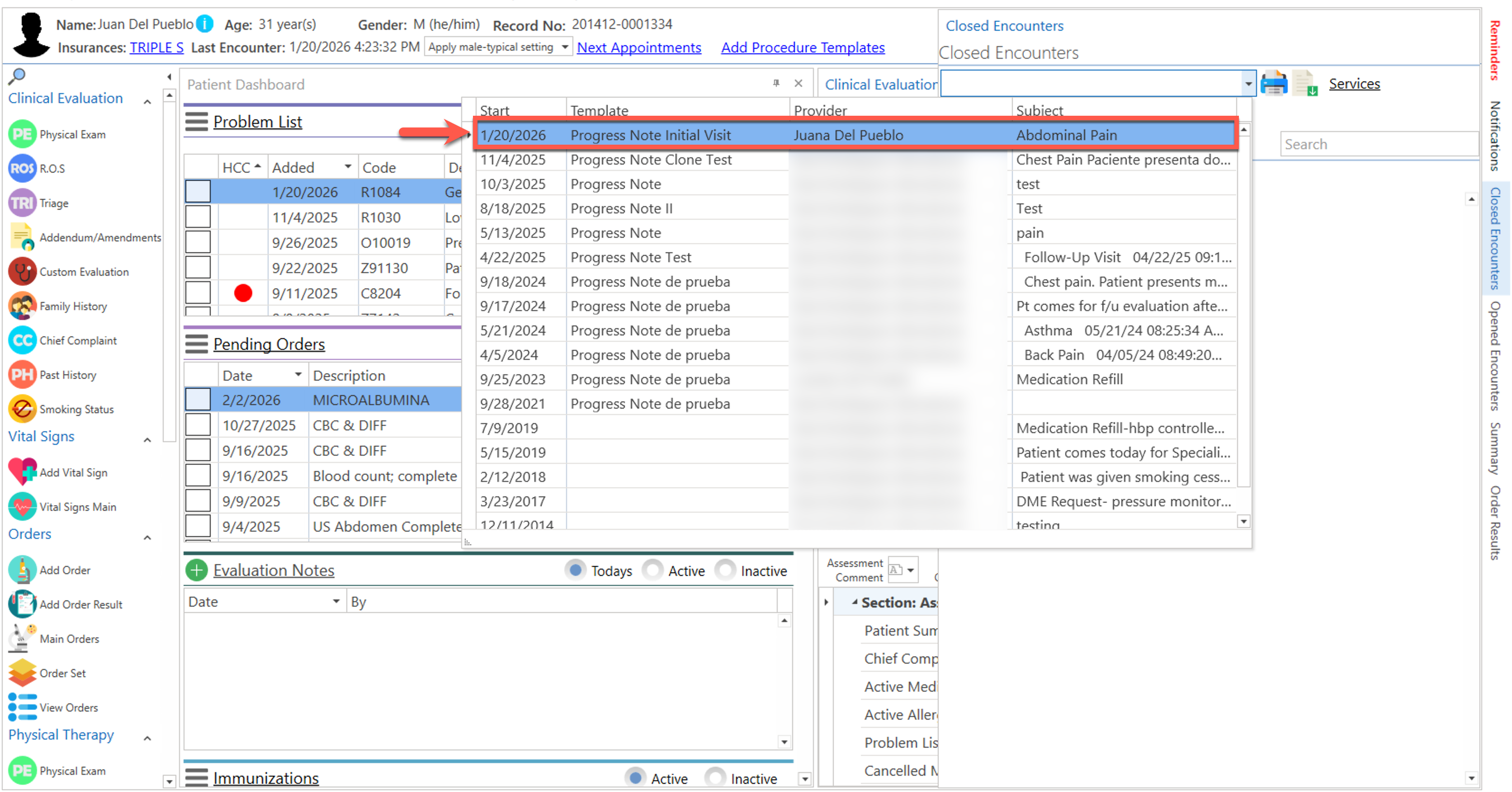 - Conociendo el área de: Advanced Progress Note / Closed Encounters