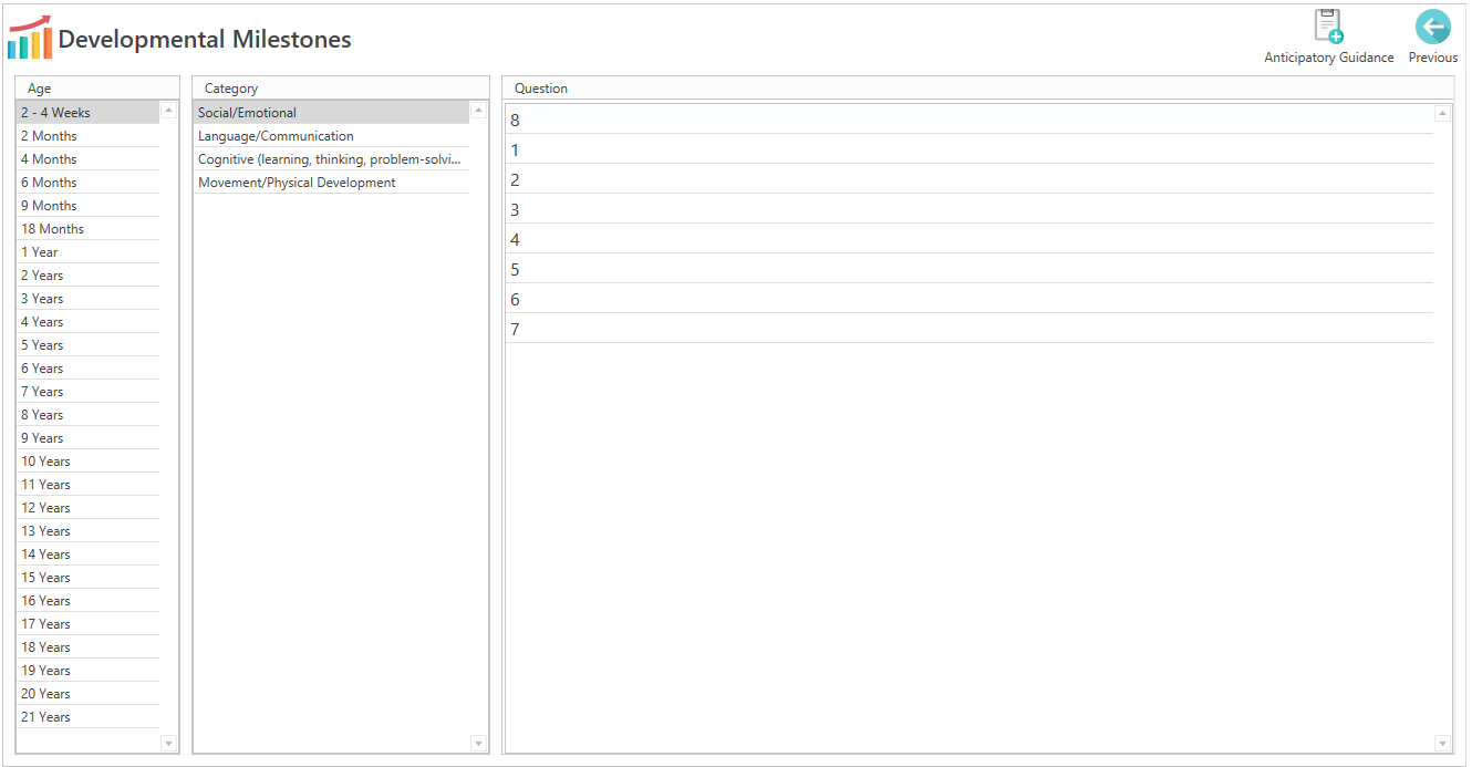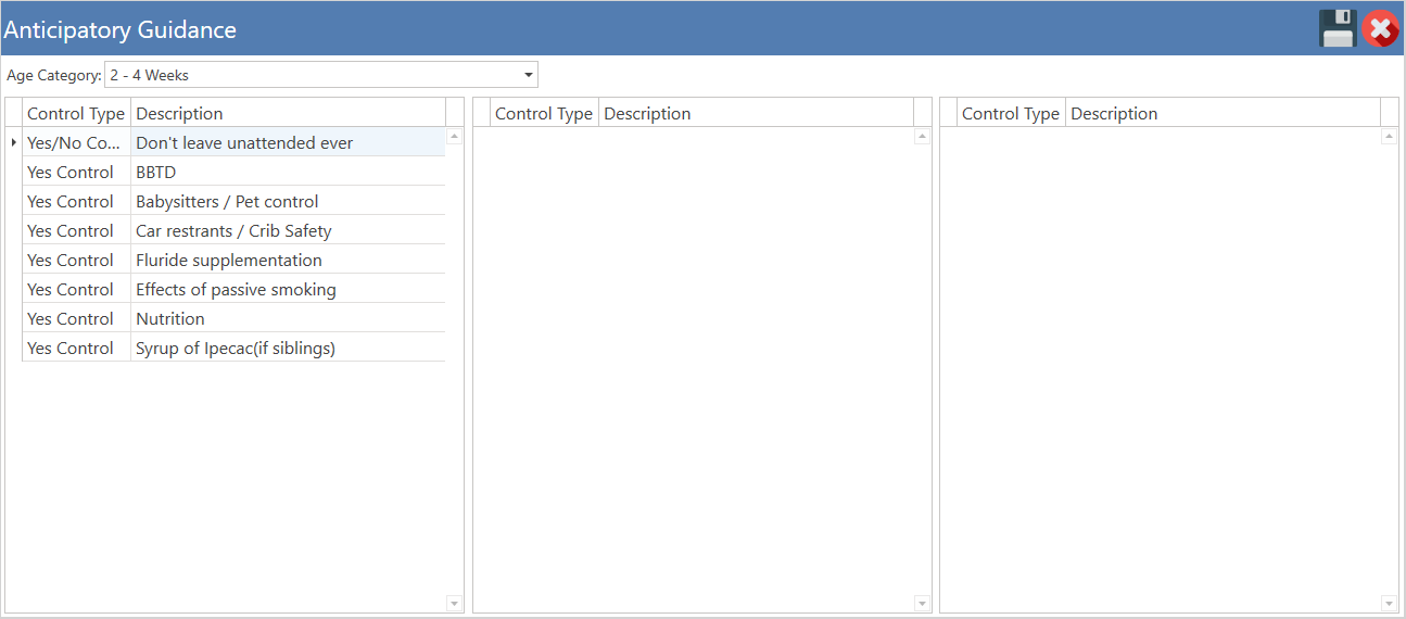 - Anticipatory Guidance: When pressed, it will display the screen where the options are configured, which are displayed in the Anticipatory Guidance screen.