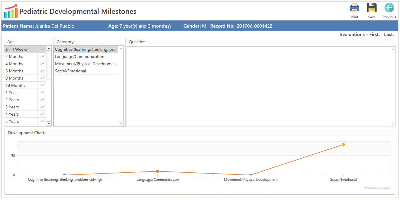 The options that are recorded on this screen can be displayed on the: Advanced Progress Note / Pediatric Developmental Milestones
