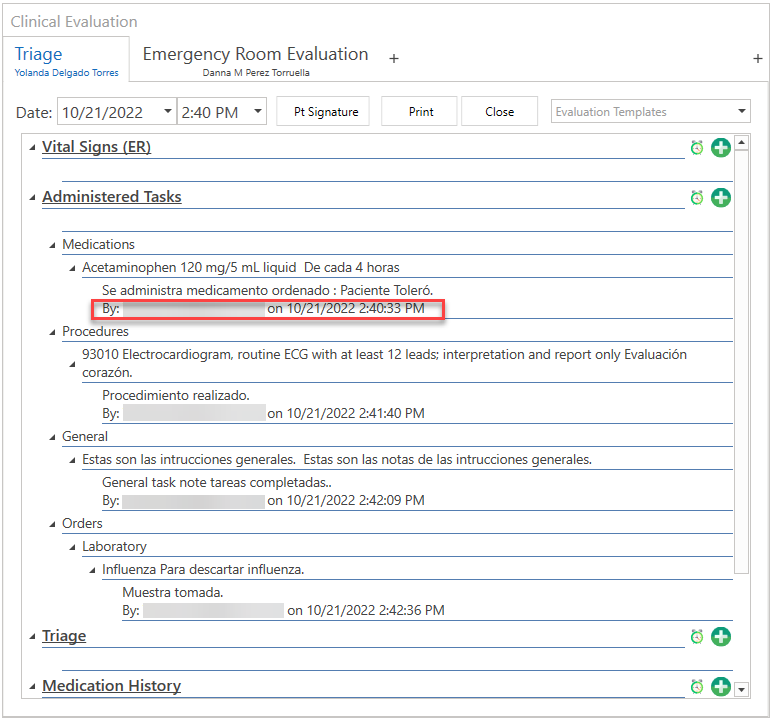 - ER / Clinical Tasks - Correction of user display in the Clinical Evaluation section, when selecting tasks as completed.