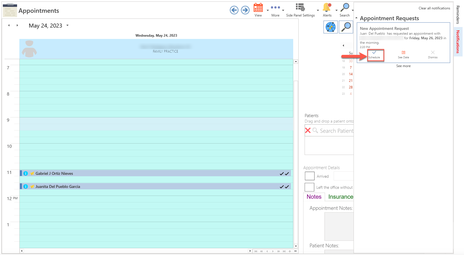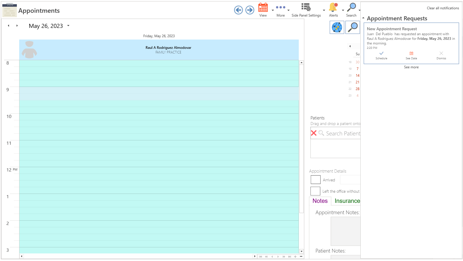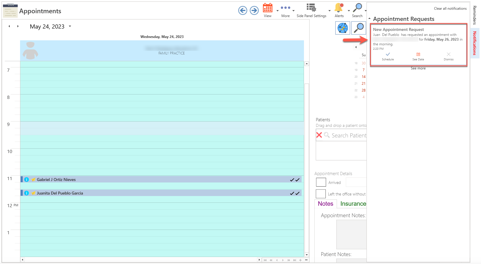 • The patient's appointment request will be displayed.
