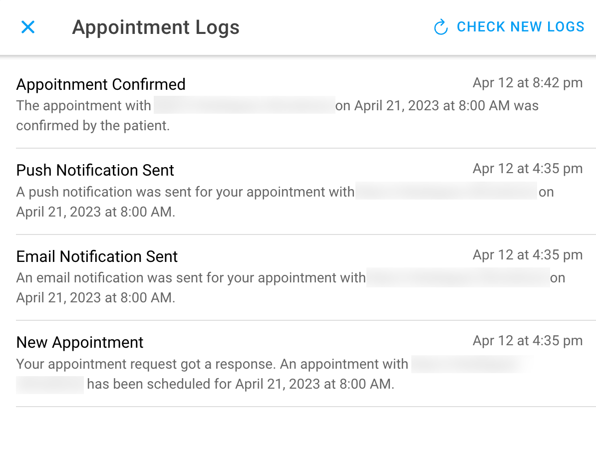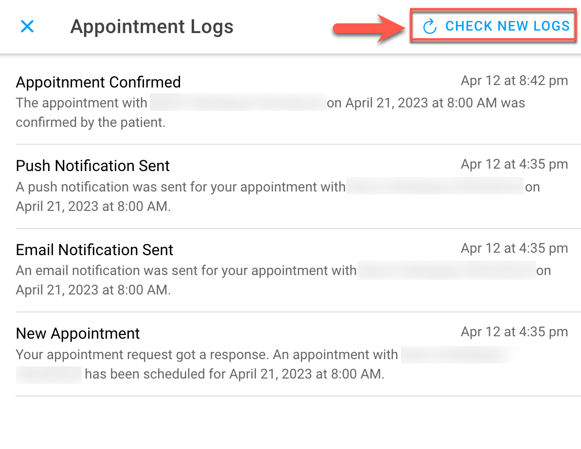 • To update the appointment logs, press the Check New Logs button.